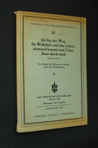Free Ich bin der Weg, die Wahrheit und das Leben, niemand kommt zum Vater denn durch mich (Johannes 14,6), Der Kampf der Bekennenden Kirche wider das Neuheidentum, (= Zeugnisse der Bekennenden Kirche, Herausgegeben von Universitätsprofessor Dr. iur. Erik Wolf, Freiburg im Breisgau: Das christliche Deutschland 1933 bis 1945, Dokumente und Zeugnisse herausgegeben von einer Arbeitsgemeinschaft katholischer und evangelischer Christen, Evangelische Reihe: Heft 4), PDF Download